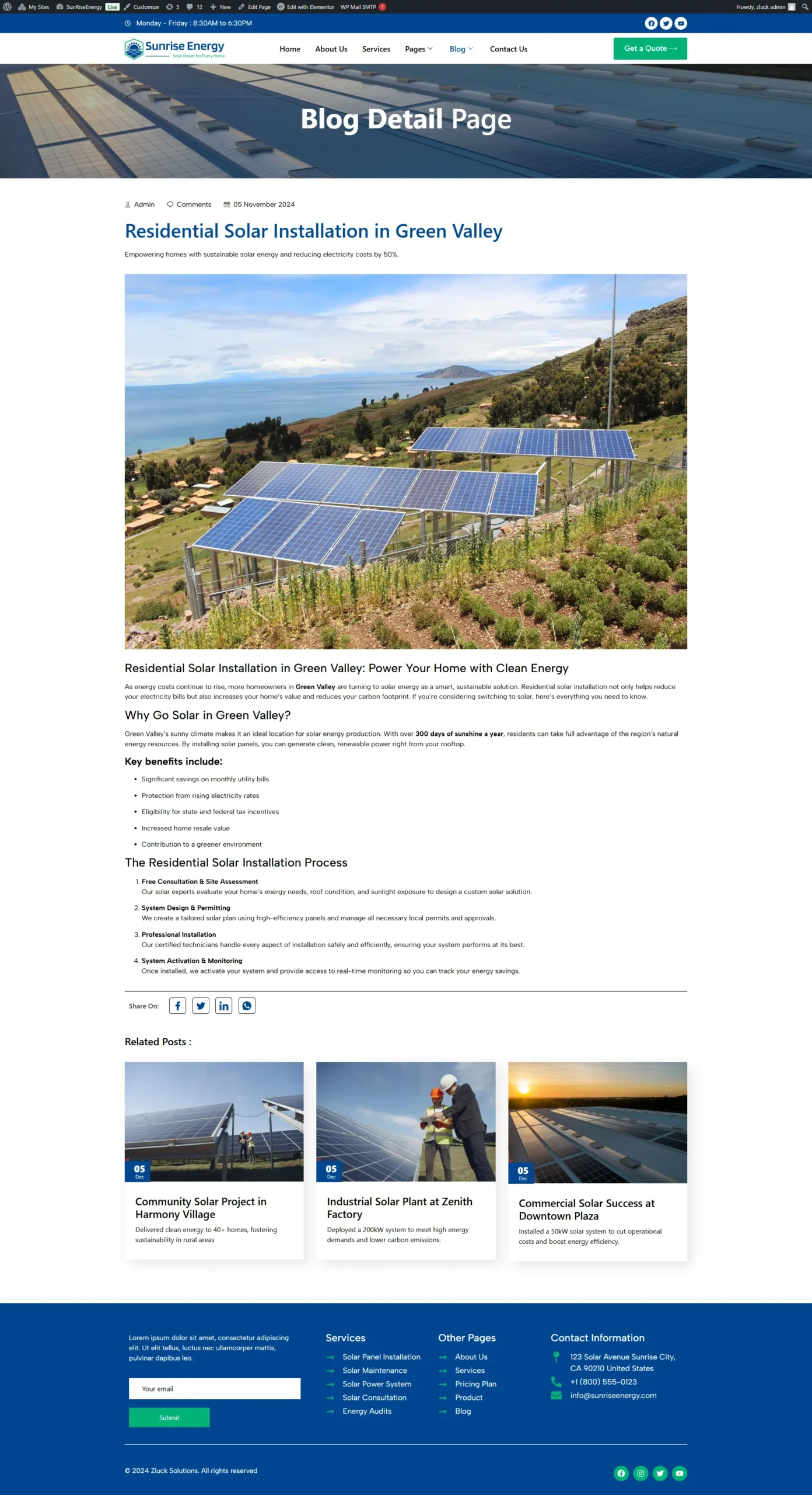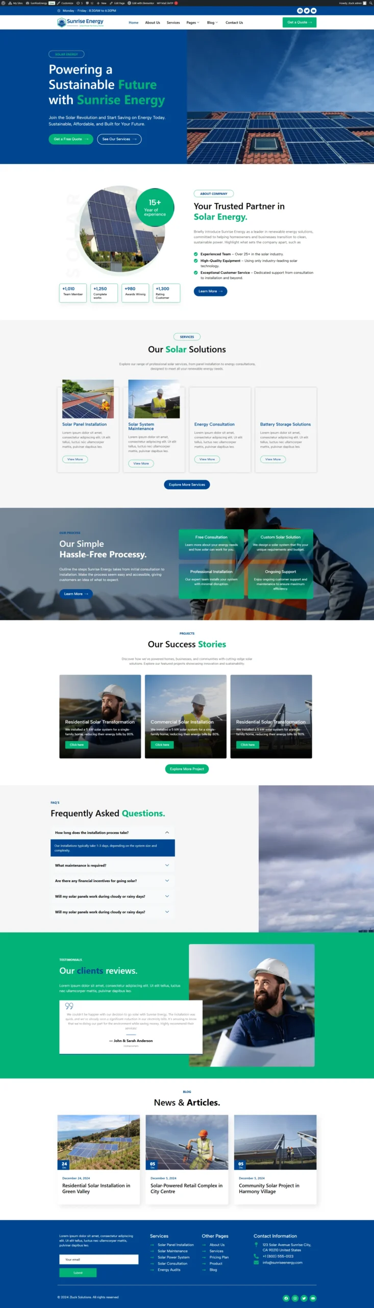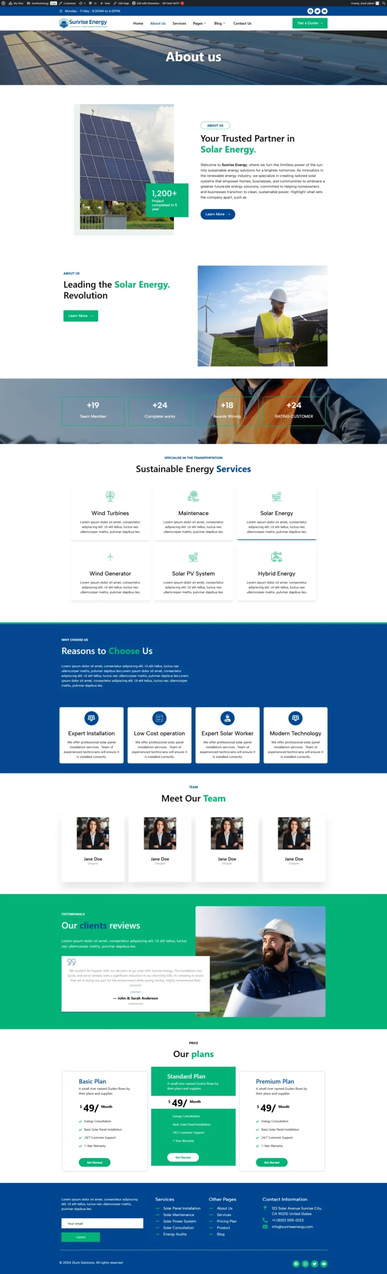 Sunrise Energy is a sophisticated and responsive Elementor Template Kit meticulously crafted for renewable energy companies, solar power providers, green tech startups, and energy-service agencies.
